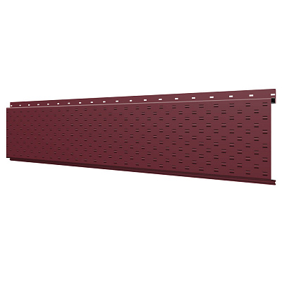 Линеарная потолочно-стеновая панель с ПЕРФОРАЦИЕЙ для вентиляции цвет RAL3005 Красное Вино применяется в качестве софитов для подшивы крыши, наружной и внутренней отделки потолков, стен, фронтонов фасада дома в Нижнем Новгороде.