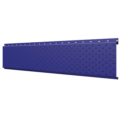 Линеарная потолочно-стеновая панель с ПЕРФОРАЦИЕЙ для вентиляции цвет RAL5002 Синий Ультрамарин применяется в качестве софитов для подшивы крыши, наружной и внутренней отделки потолков, стен, фронтонов фасада дома в Нижнем Новгороде.