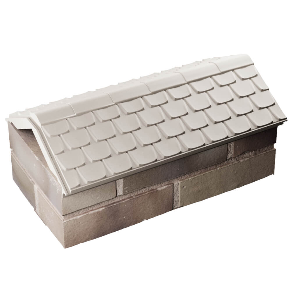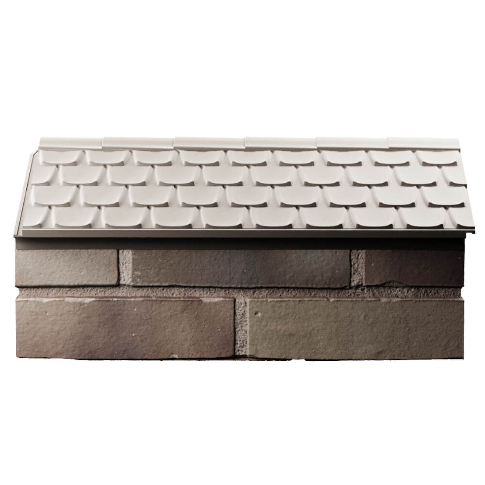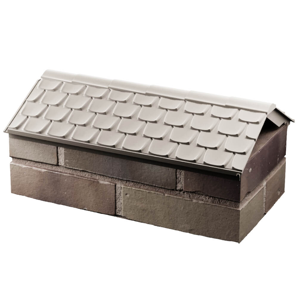 Парапет Elbrus Бежевый 303 х 510 х 105 мм с посадкой на 1 кирпич (255 мм) под натуральную черепицу может быть применен как в цокольной, так и в верхней части забора в виде конька.