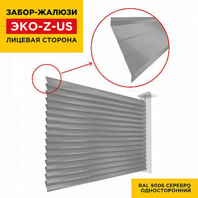 Ламель металлическая Z-образная усиленная ЭКО-Z-US, цвет RAL 9006 Серебро, длина любая кратно 1см под заказ - для забора-жалюзи, беседки, перголы в Нижнем Новгороде