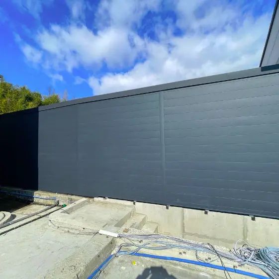 Фото 1 Линеарная Панель RAL7024 Серый Графит RoofTop Бархат на опорной стене и заборе