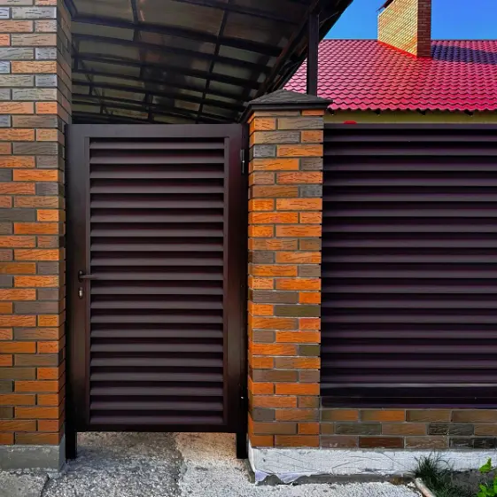 Секция забора жалюзи из ламелей еврожалюзи RAL8017-8017 МАТТЕ Коричневый Шоколад с кирпичными столбами анфас двусторонний Вид спереди забор ламели еврожалюзи RAL8017-8017 МАТТЕ Коричневый Шоколад матовый двусторонний Вид сзади забор ламели еврожалюзи RAL8017-8017 МАТТЕ Коричневый Шоколад матовый двусторонний Ламели еврожалюзи RAL8017-8017 МАТТЕ Шоколад матовый двусторонний Ламель Еврожалюзи RAL8017-8017 МАТТЕ Коричневый Шоколад двусторонний для заборов-жалюзи, беседок, пергол